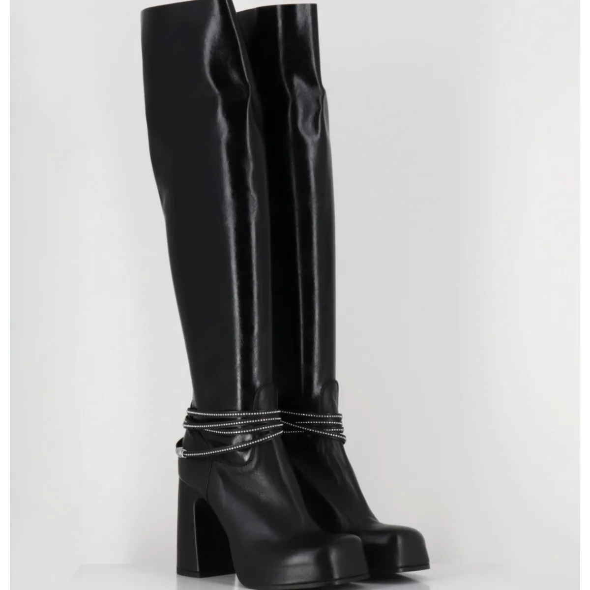 Bottes | Plateformes^GARRICE LAB Bottes hautes cuir & bijou à plateforme – WONDER GLOVE NERO NOIR