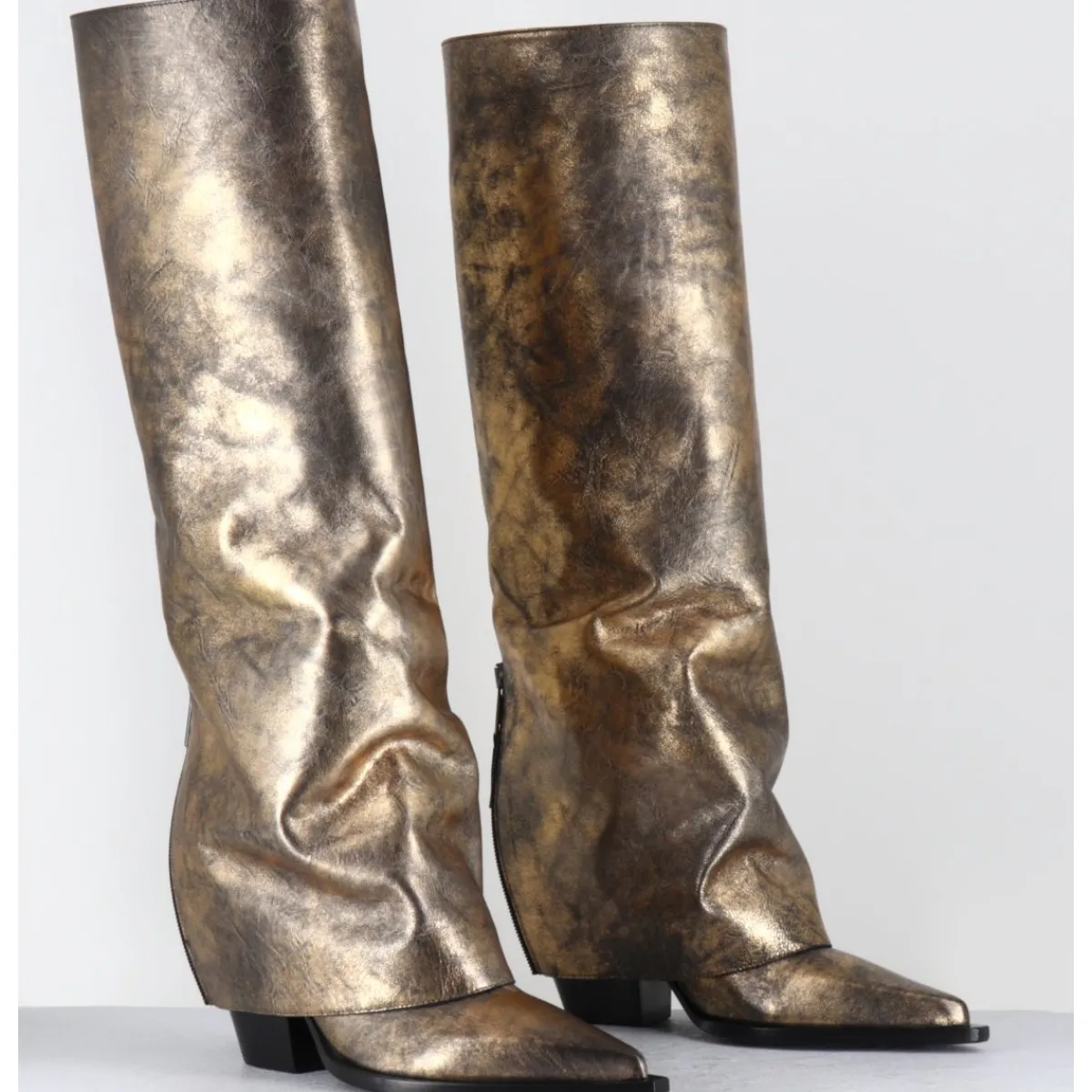 Bottes | Santiags^ELENA IACHI Bottes santiag jean laminé bronze & argent -E3869-T RIC SILVER GOLD